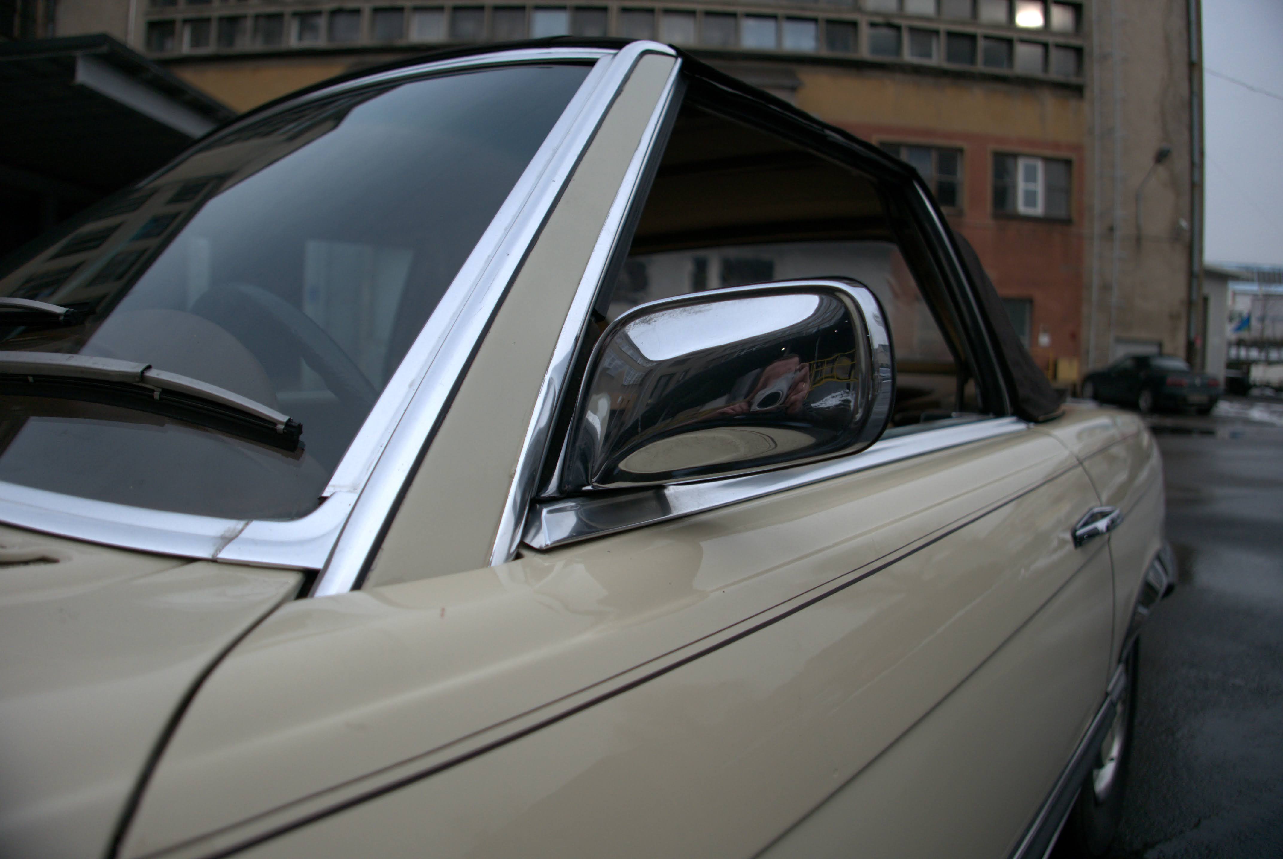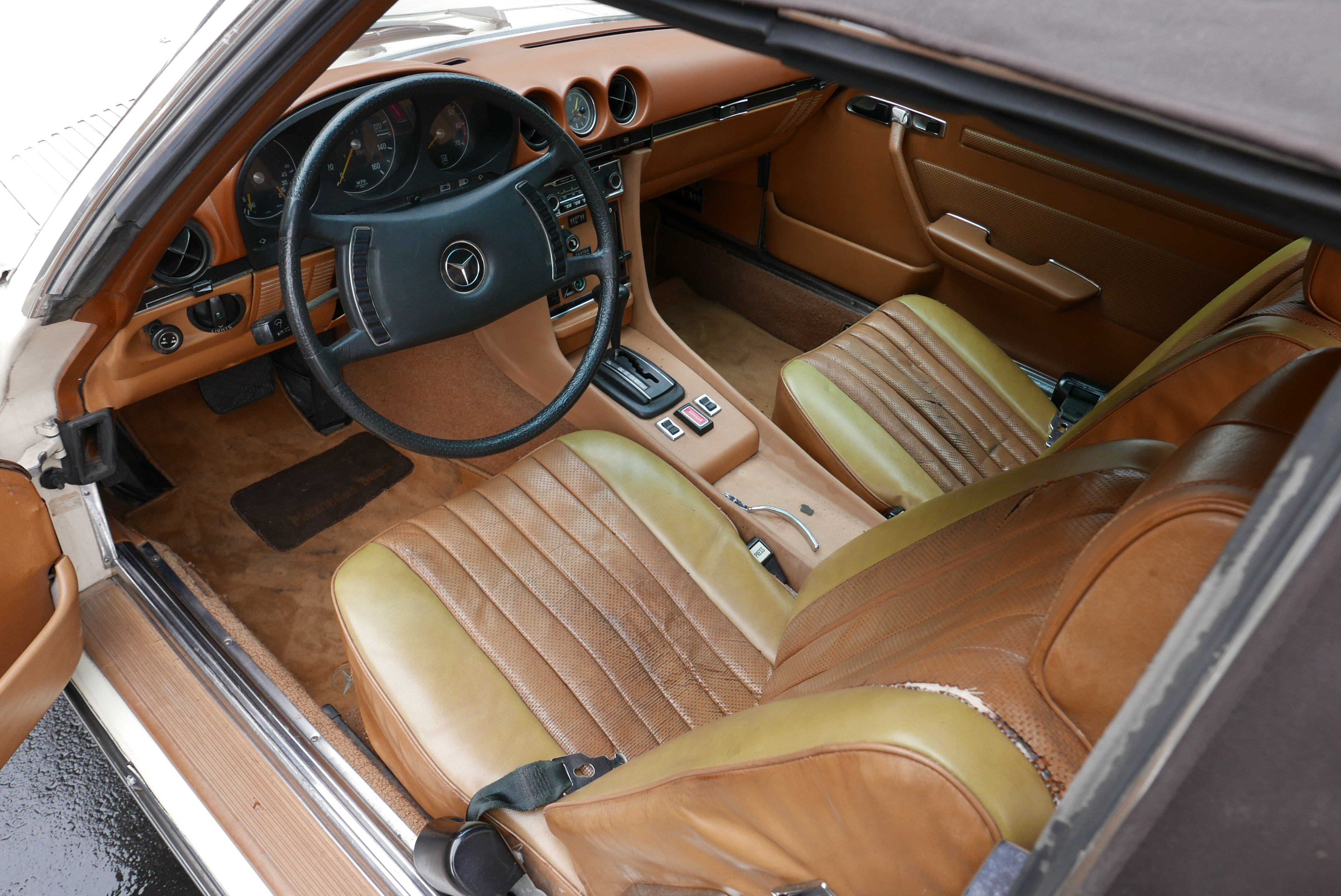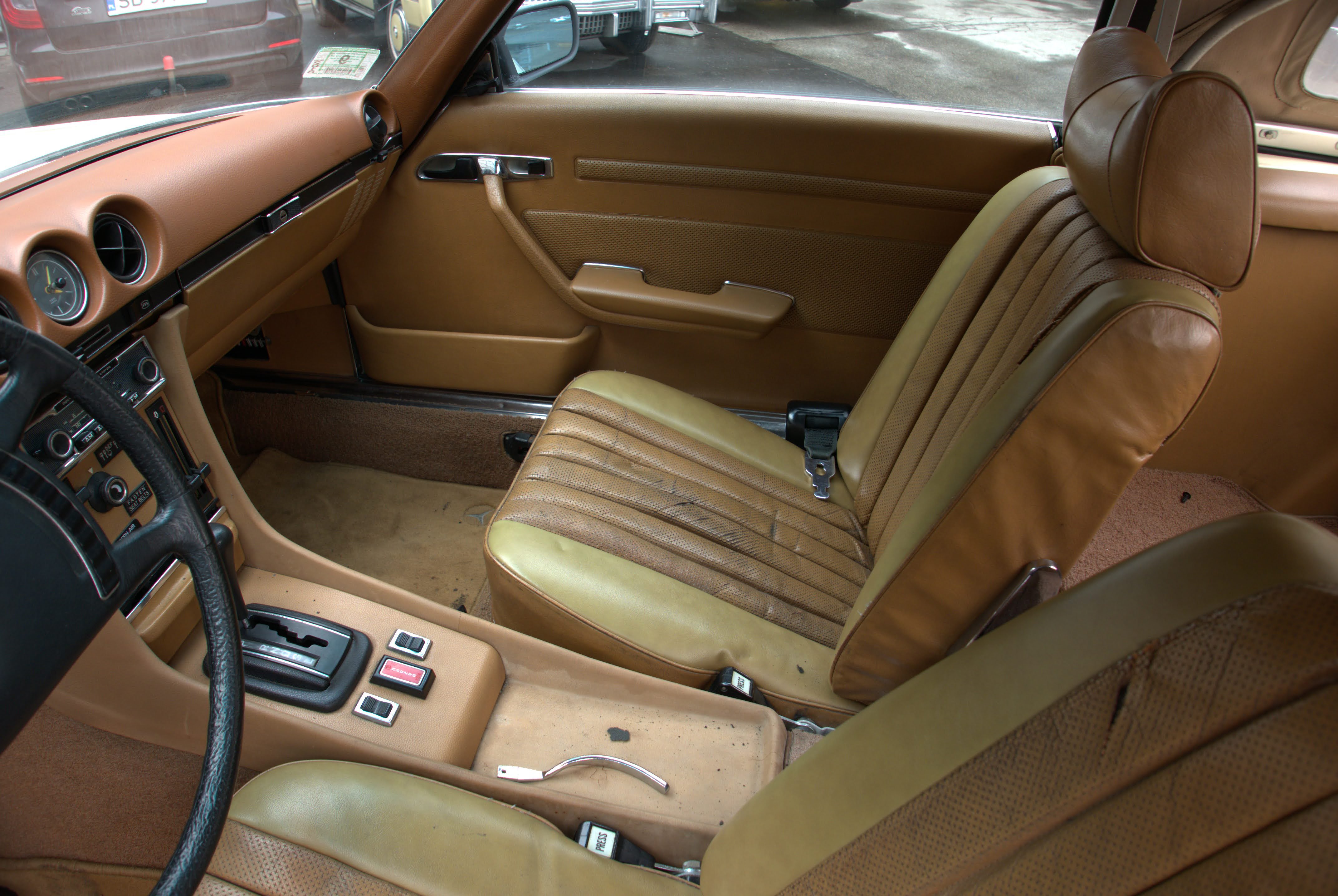 Model, který nabízíme, je Mercedes R107 450SL z první výrobní série a první rok, kdy byl 4,5litrový motor označen podle objemu, dříve to bylo 350 SL a objem byl 4,5 litru. Vůz má evropské nárazníky - na v té době ještě nebyly žádné nárazníky. USA vstoupilo až v roce 1974).