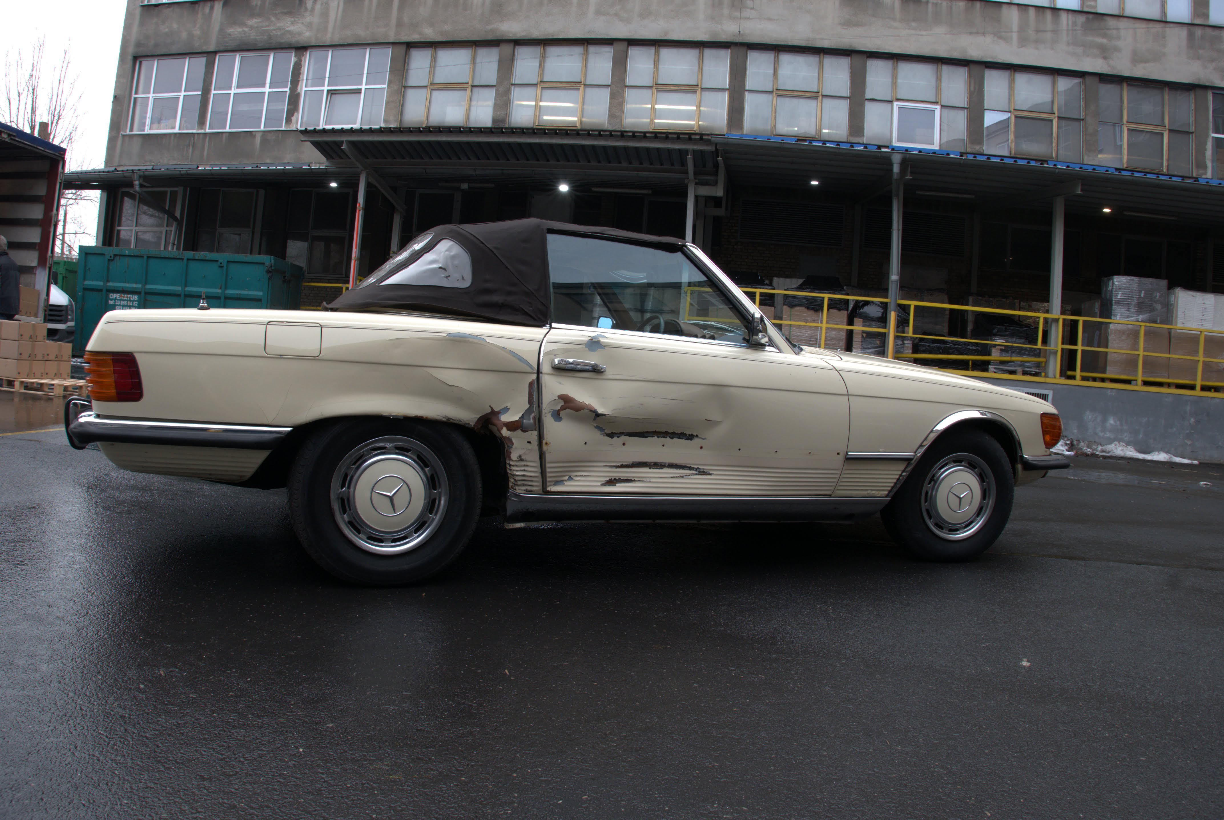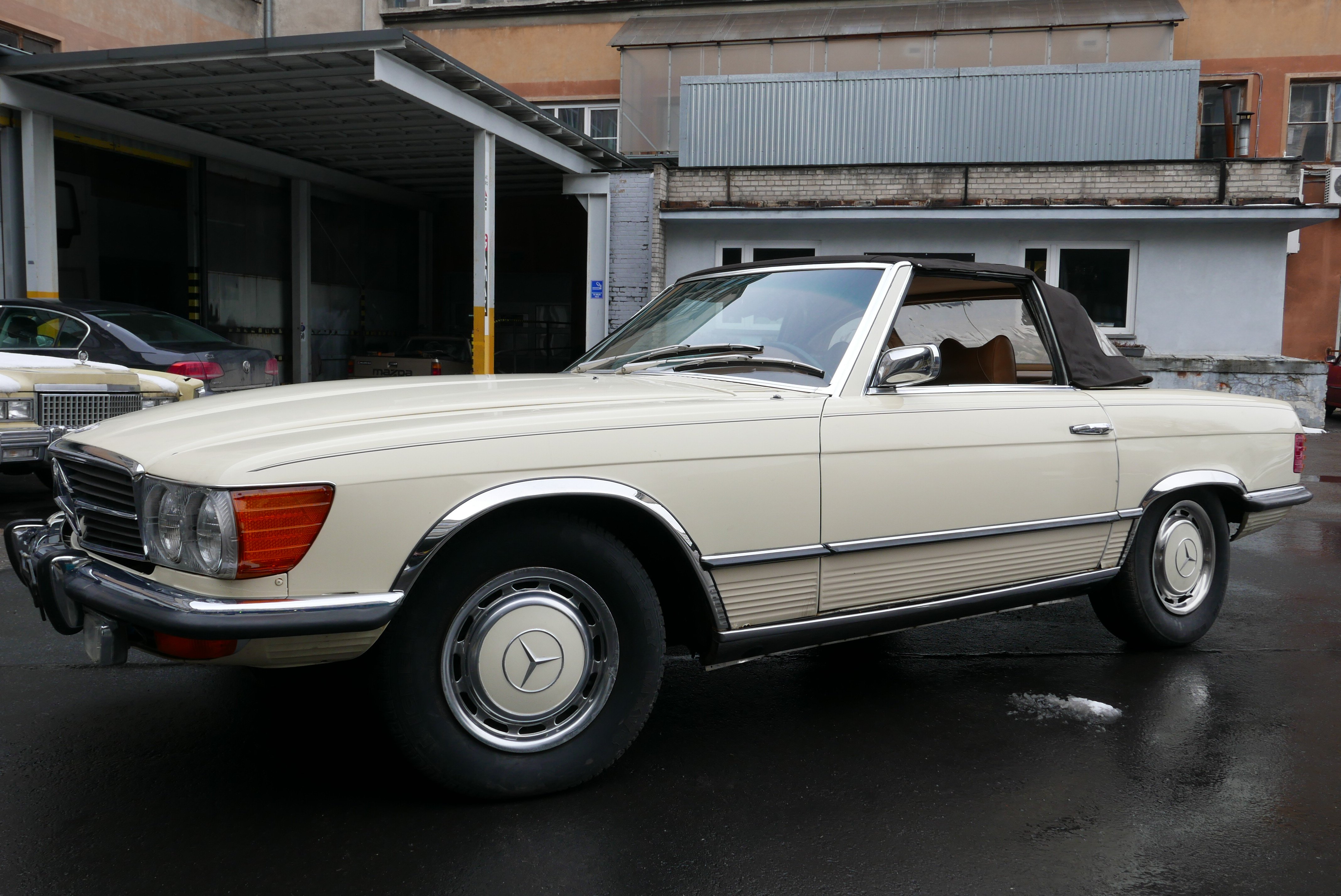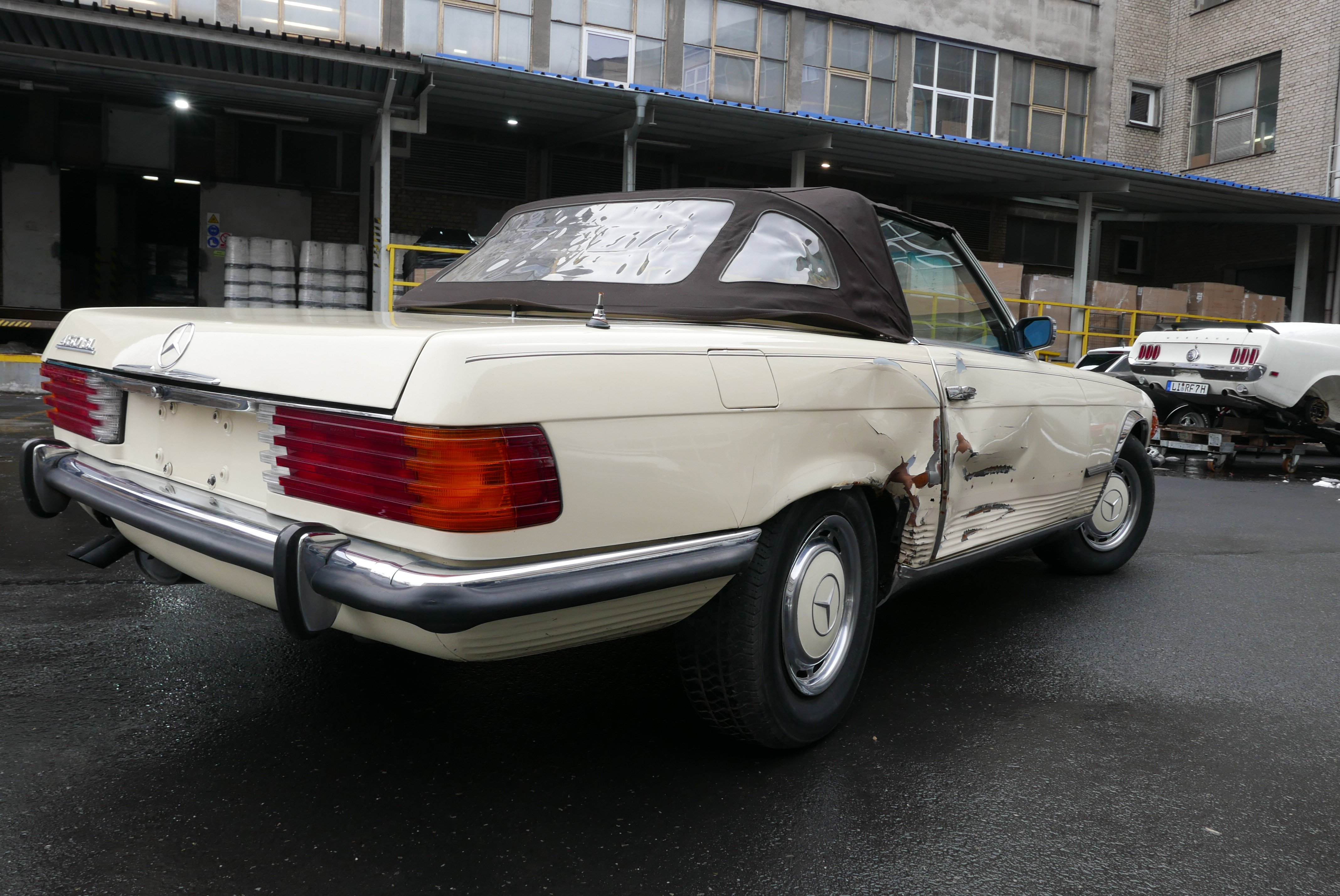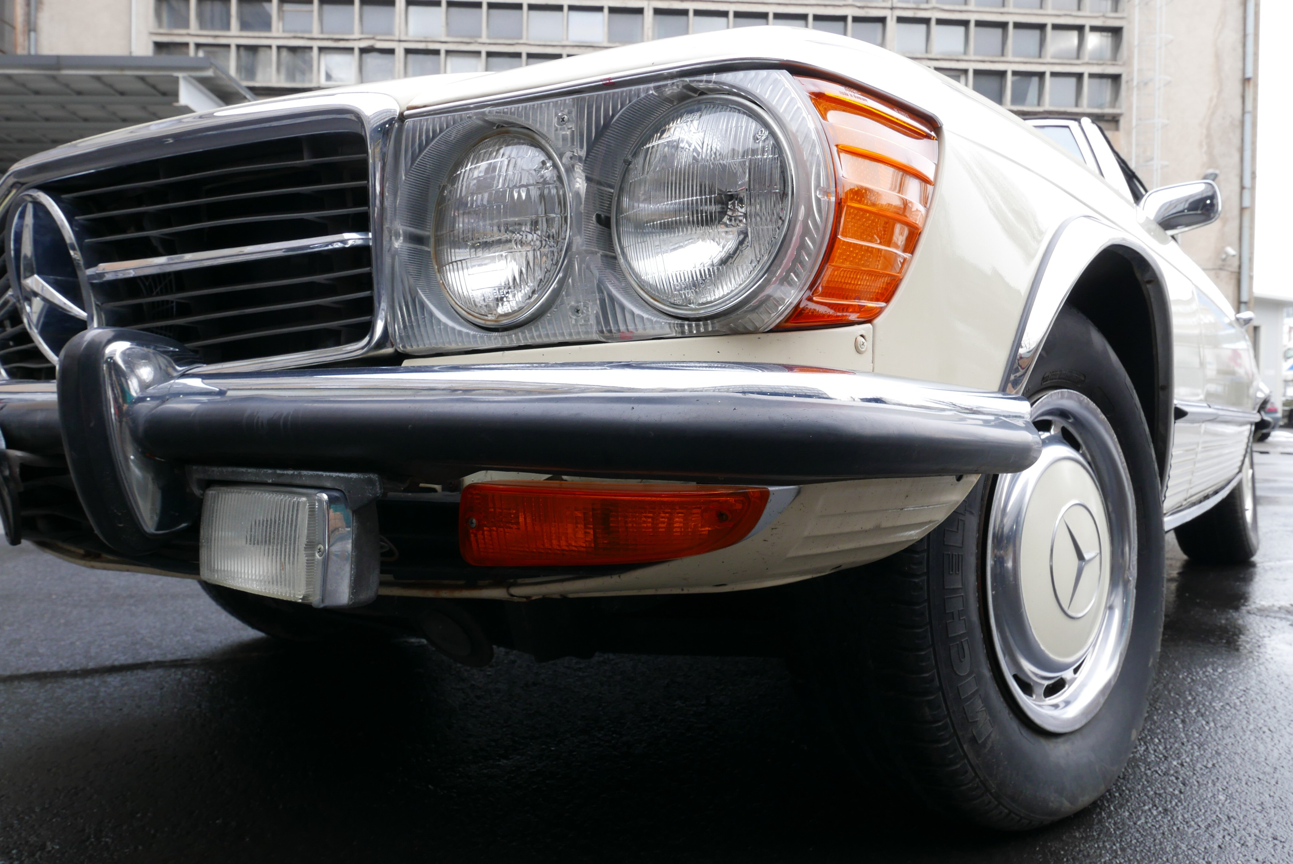 Model, který nabízíme, je Mercedes R107 450SL z první výrobní série a první rok, kdy byl 4,5litrový motor označen podle objemu, dříve to bylo 350 SL a objem byl 4,5 litru. Vůz má evropské nárazníky - na v té době ještě nebyly žádné nárazníky. USA vstoupilo až v roce 1974).