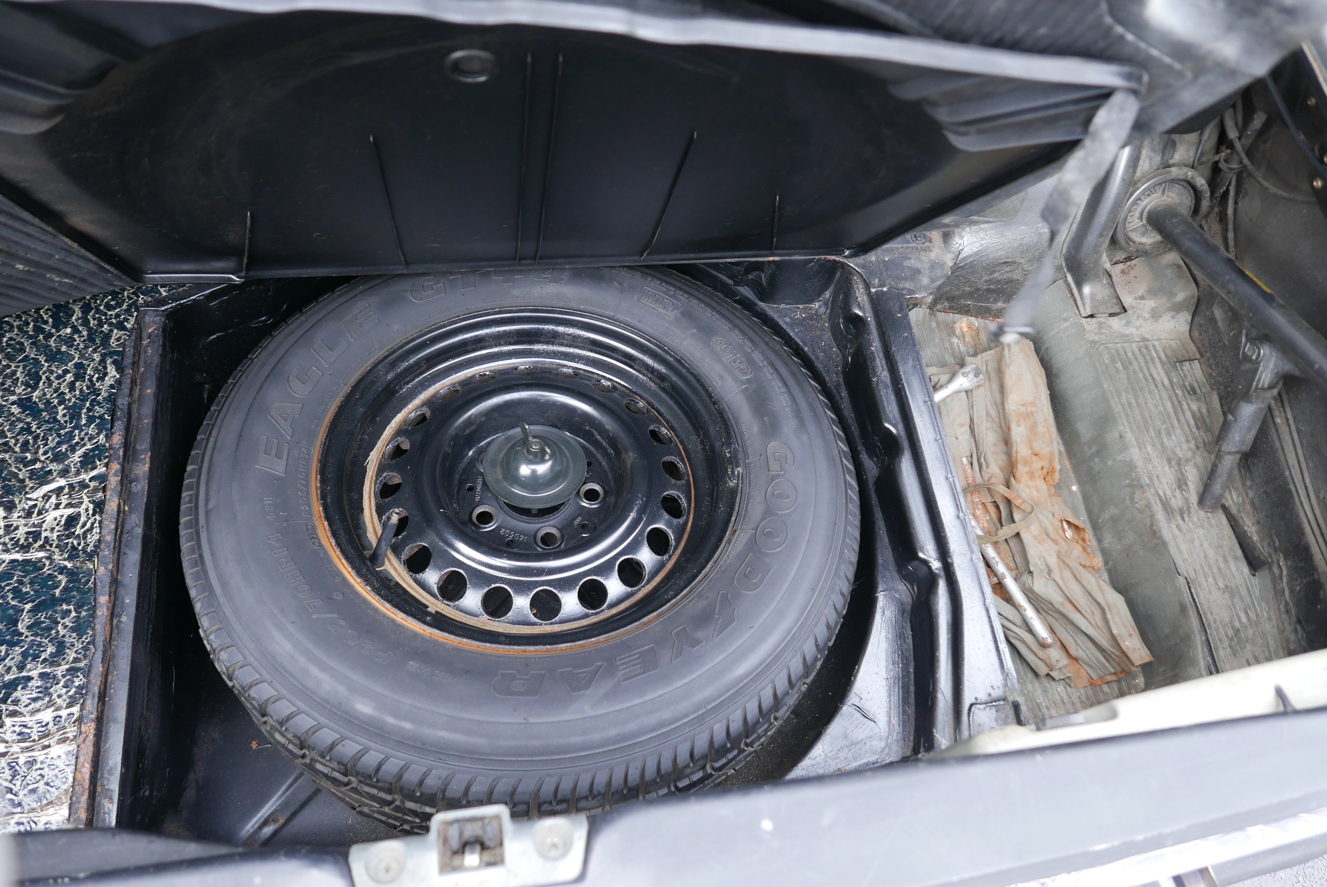 Pravé dveře a pravý zadní blatník (po srážce), sedadla a menší střediska koroze vyžadují opravu.