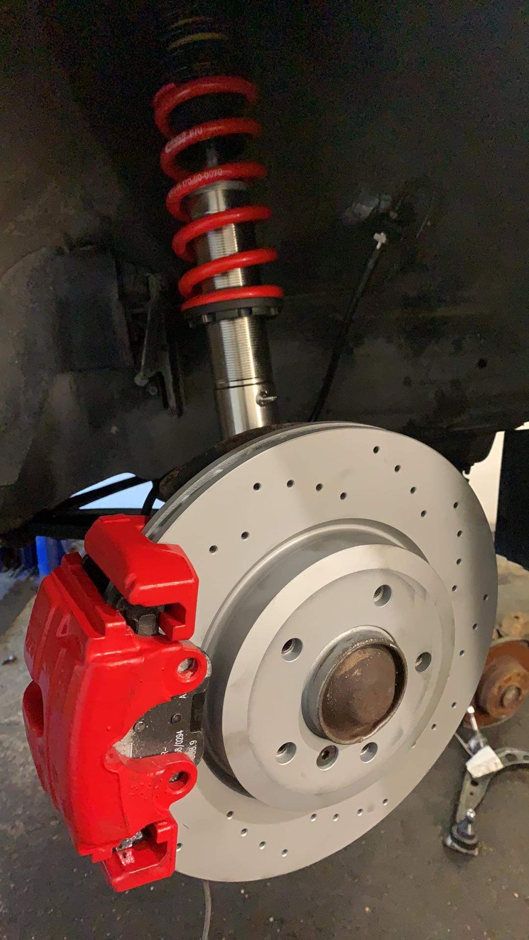 Předek e46 330i, vrtané kotouče Zimmermann, desky ATE keramik