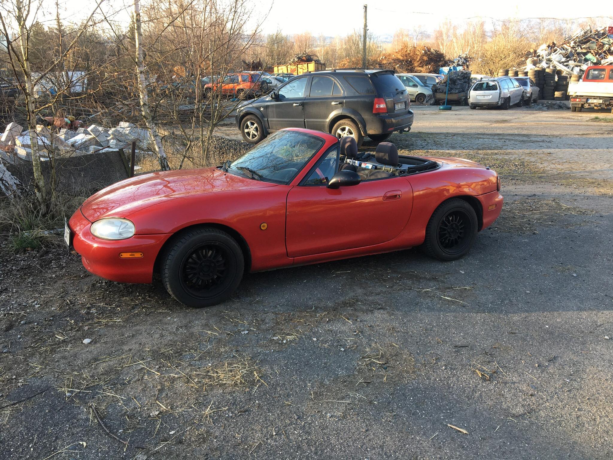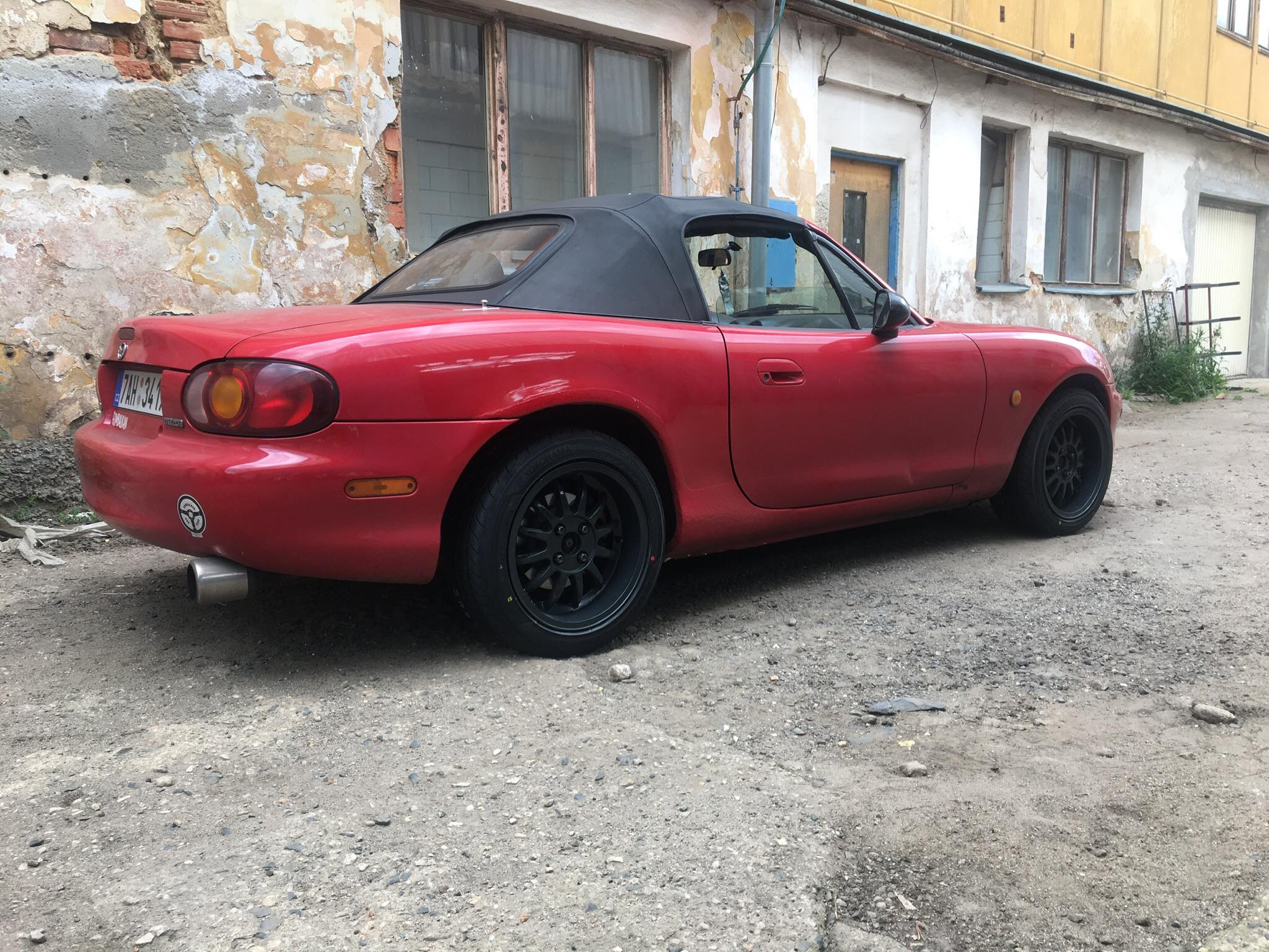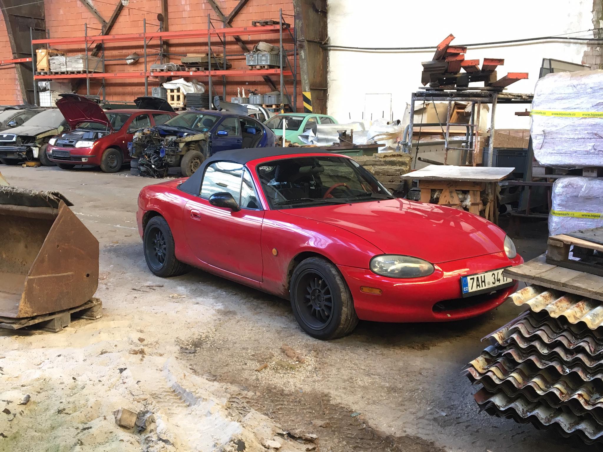 Prodám Mazdu MX-5, 1.8 předfl. Rv. 1999. Nájezd 30x tis. km. STK sice do listopadu 2020, ale ted prodloužena do 6.9. Olej si vezme dle stylu jizdy 0,3-0,5 l na 1000km, takže nic hrozného. V létě 2020 se dělali nové nosníky, spojka, čepy a stabíky. Lemy s prahama dělal předchozí majitel. Novej středni díl vejfuku. Bude nova lambda a olej. Střecha moc pěkna, neděravá. Je tam otevřený sáni, ale origo box a i filtr mám a dam k autu s pár dílama ( jedno přední horní rameno, řemenice, cívka a kabely a sada komplet tesneni kolem oken). Nově na autě jiné neděravé blatníky, nejsou v laku. Cena plati v pripade, ze necham nalakovat. Bez laku cena 92000kc